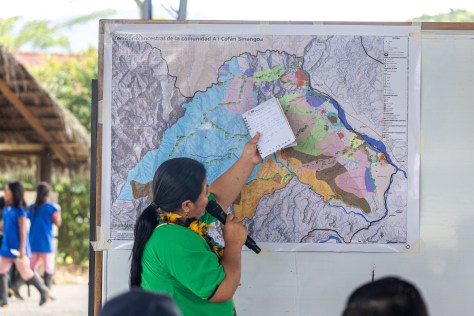 - Instalación de señalética oficial que delimite el territorio A’i Cofán frente al avance de colonos o mineras.